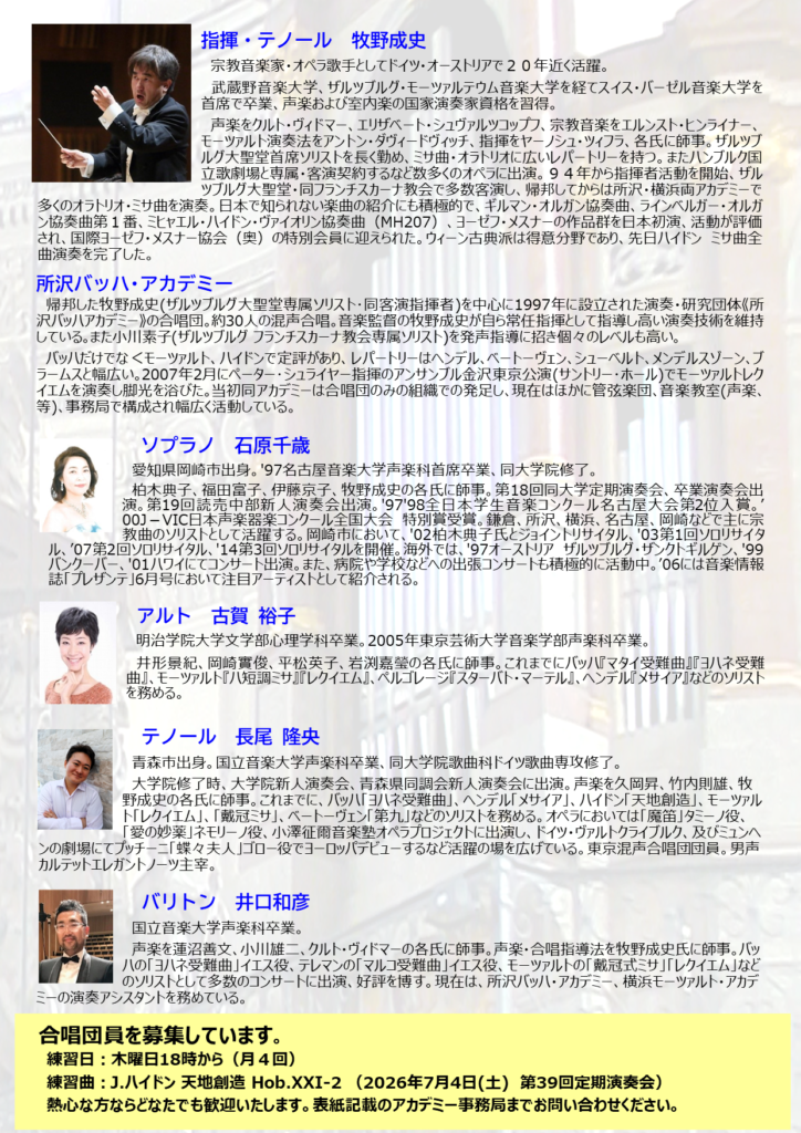 曲目:ハイドン 天地創造 予定