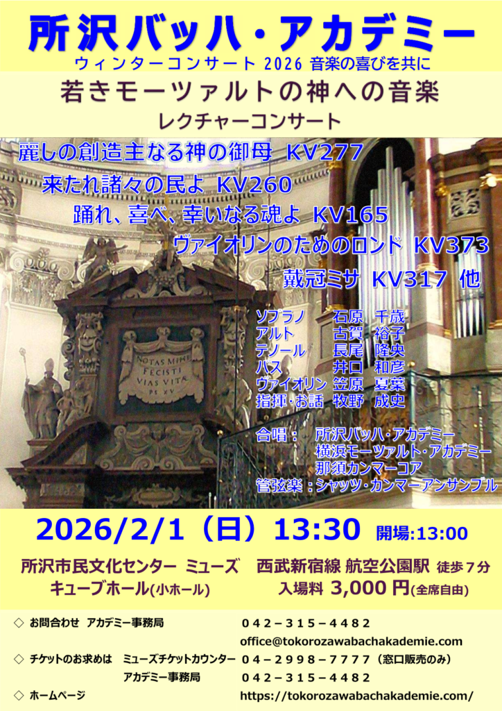 曲目:ブクステフーデ、バッハ、モーツァルト